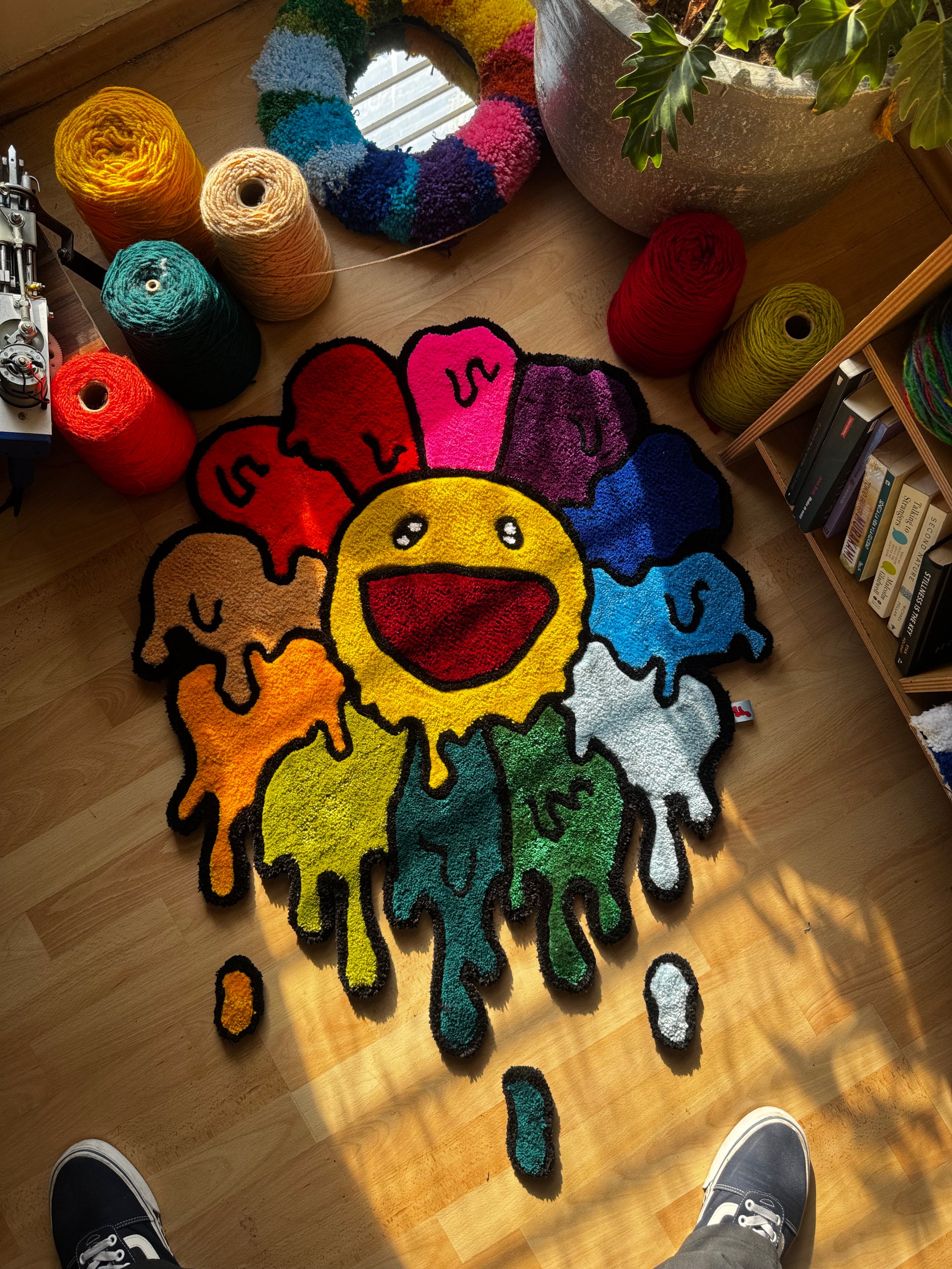 Flor de Murakami derritiéndose, hecha con lana 100% acrílica